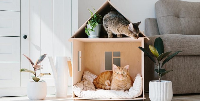 Koty lubią leniuchować, preferują ciepłe i przytulne miejsca, z których można dogodnie obserwować otoczenie. Czasem wybierają miejsca odizolowane, aby skryć się przed niepożądanymi spojrzeniami opiekunów. Przecież koty znane są z wędrowania własnymi ścieżkami i nie zawsze mają ochotę na towarzystwo ludzi. Samotność jest im potrzebna tak samo, jak pieszczoty na ludzkich kolanach! Dlatego świetnym rozwiązaniem stają się legowiska z dachem – wyglądają one trochę jak budy dla psów. Są jednak w całości wykonane z miękkiego materiału – przyjaznego dla kotów.